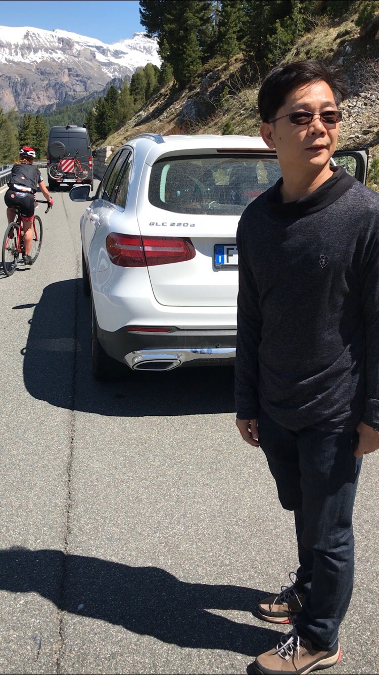 На 64км этапа мне оставалось всего около километра до конца третьего спуска – потом маленький подъёмчик и вниз к финальному, самому желанному подъёму этапа – Valparola Pass. Я шла со спуска по чистому и относительно прямому участку, когда меня подрезала машина – автомобиль марки Mercedes Benz, находящийся в аренде у китайцев. Сначала он молниеносно обогнал меня по встречке, а затем резко остановился передо мной прямо посреди пустой дороги. Я отработала экстренное прерывистое торможение, но тормозного пути не хватало, чтобы остановиться на спуске также быстро, как это может сделать автомобиль. Уходить налево на встречку (где обрыв) и направо в гору было бы более опасным вариантом. Я работала тормозами до последнего в своей полосе, понимая, что не отторможусь, но надеялась, что авто всё же поедет – увы. Передний Zipp самортизировал в бампер, после чего я плавно вошла шлемом и зубами в заднее стекло. Спасибо Жене за шлем с визором – мой нос остался цел. Спасибо случаю, что авто было хэтчбэк, и я упала после удара позади авто, а не полетела вперёд с велосипедом через багажник и крышу. От финального приземления на бок на шоссере сломался петух.
